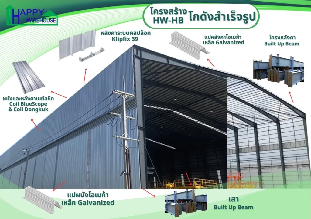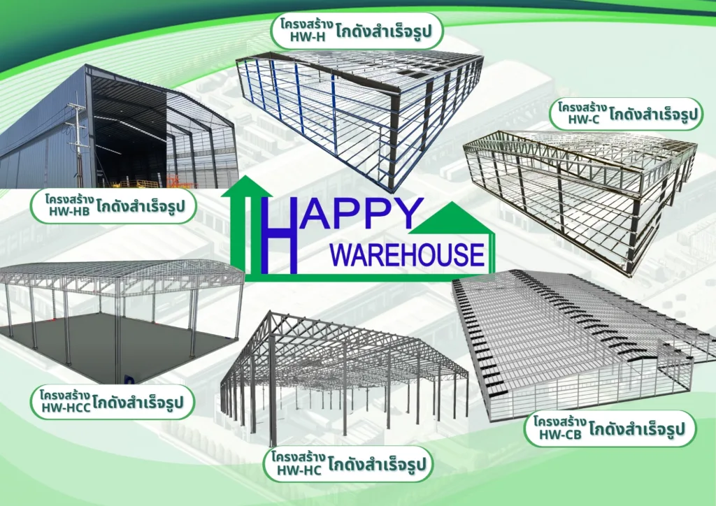 Happy Warehouse ผู้นำด้านระบบการก่อสร้างโกดังสำเร็จรูป อันดับ 1 ของเมืองไทยดูแลทุกขั้นตอน ตั้งแต่วางแผน ออกแบบ ก่อสร้าง ไปจนถึงส่งมอบพร้อมควบคุมงบประมาณแบบมืออาชีพ สร้างไว ไม่ต้องรอนาน ได้มาตรฐานตามหลักวิศวกรรมไม่ว่าจะโครงสร้างโกดังสำเร็จรูป โรงงาน และอาคารขนาดใหญ่ เราสร้างให้ได้แบบมืออาชีพเราสร้างให้ได้แบบมืออาชีพ ควบคุมต้นทุนได้ไม่เสี่ยงงบบานปลาย ตอบโจทย์ทุกธุรกิจ